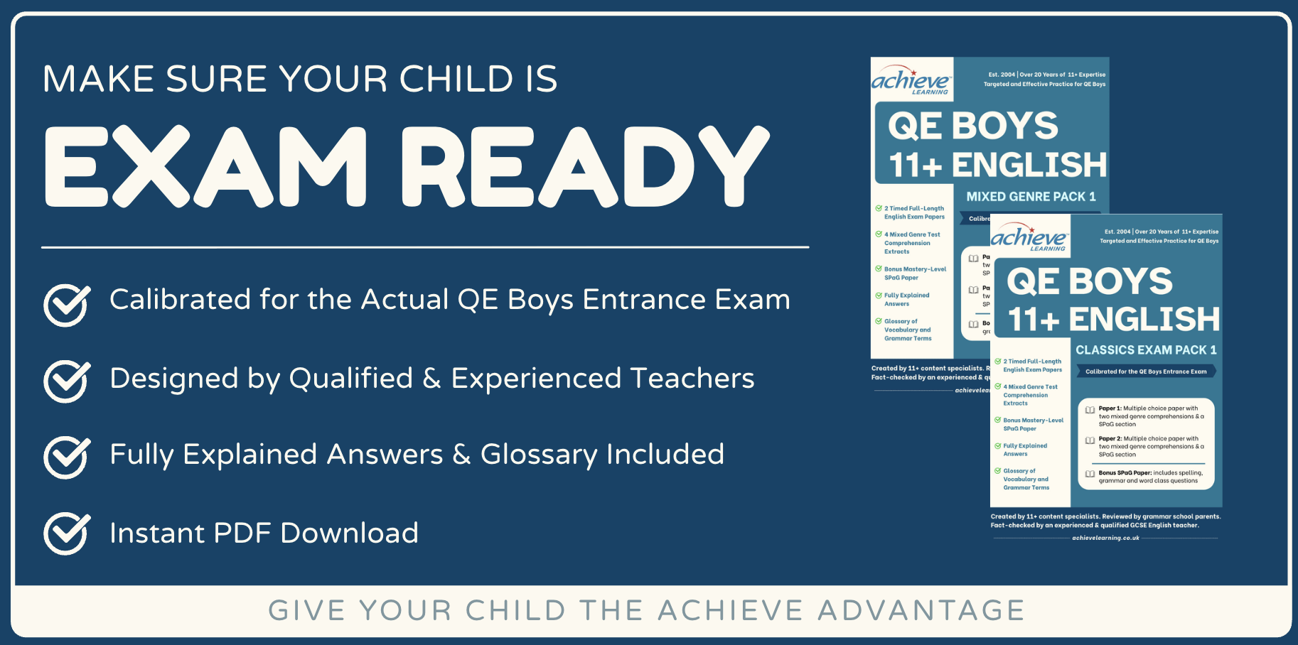 What’s important is consistency, exposure to the right kinds of texts, and a focus on smart practice. If you’re just getting started, explore our blog on the Best English Practice Papers for QE Boys — helping your child build the skills that sit behind the answers.