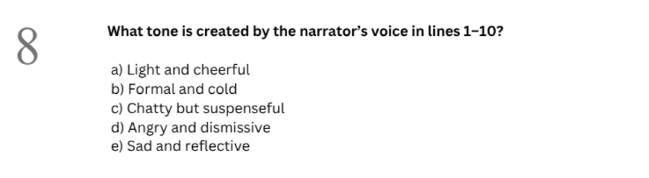 • A creative or analytical writing task, which might ask them to describe a scene, continue a story, or respond to a stimulus (like a picture or quotation).